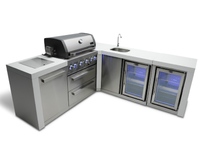 Mont Alpi 4 Burner Deluxe Island With 90 Degree Corner Beverage Center and Fridge Cabinet - MAi400-D