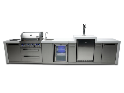 Mont Alpi 4 Burner Deluxe Island With 90 Degree Corner Kegerator and Fridge Cabinet - MAi400-D90KEGF
