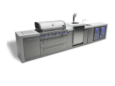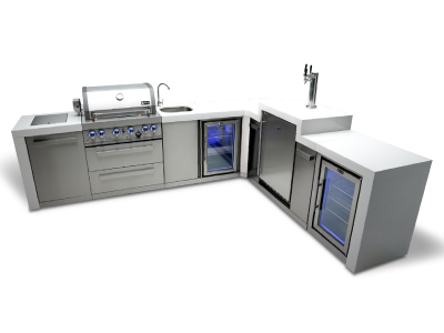 Mont Alpi 4 Burner Deluxe Island With 90 Degree Corner Kegerator Beverage Center and Fridge Cabinet