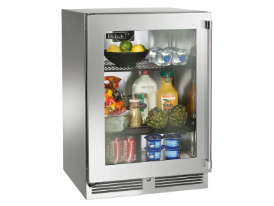 24" Perlick Marine Signature Series Left-Hinge Refrigerator in Stainless Steel Glass Door - HP24RM43