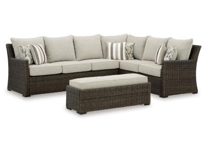 Signature Design by Ashley Brook Ranch Outdoor Sofa Sectional/Bench with Cushion (Set of 3) - P465-8