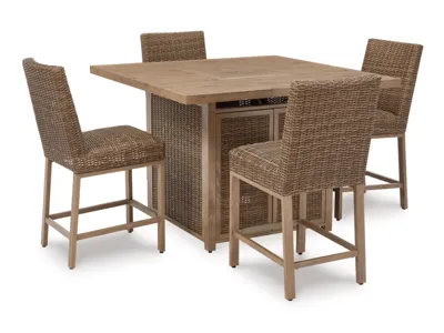 Signature Design by Ashley Walton Bridge Outdoor Bar Table and 4 Barstools - P749P1