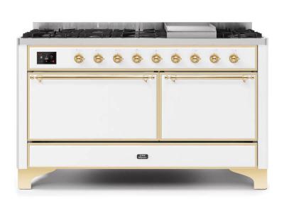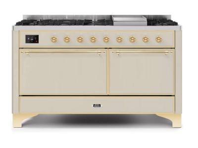 60" ILVE Majestic II Dual Fuel Natural Gas Range with Brass Trim - UM15FDQNS3/WHG NG