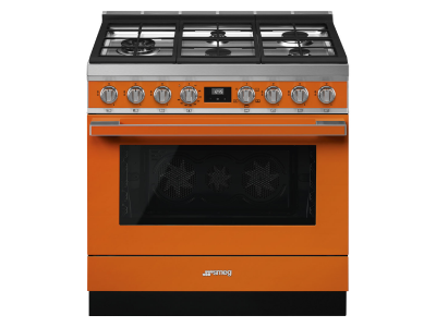 36" SMEG Cooker Portofino Freestanding Professional Gas Range with 5 Burners in Orange - CPF36UGGOR