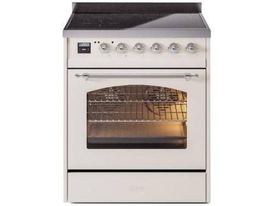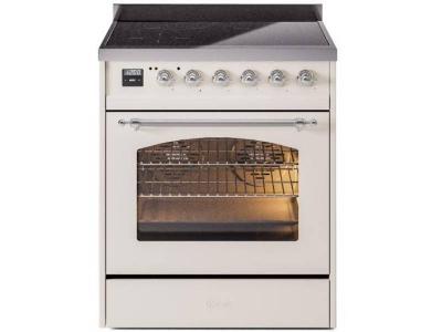 30" ILVE Nostalgie II Induction Freestanding Range in Antique White with Chrome Trim - UPI304NMP/AWC