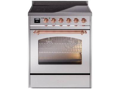 30" ILVE Nostalgie II Induction Freestanding Range in Stainless Steel with Copper Trim - UPI304NMP/S