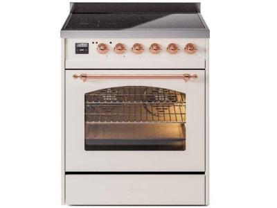 30" ILVE Nostalgie II Induction Freestanding Range in Antique White with Copper Trim - UPI304NMP/AWP