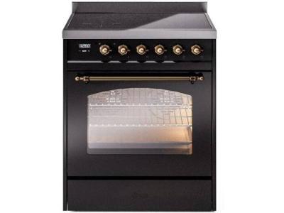 30" ILVE Nostalgie II Induction Freestanding Range in Glossy Black with Bronze Trim - UPI304NMP/BKB