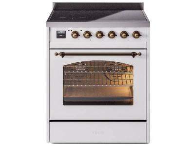 30" ILVE Nostalgie II Induction Freestanding Range in White with Bronze Trim - UPI304NMP/WHB
