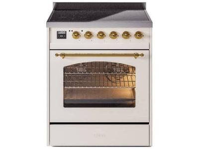 30" ILVE Nostalgie II Induction Freestanding Range in Antique White with Brass Trim - UPI304NMP/AWG