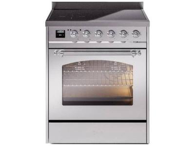 30" ILVE Nostalgie II Induction Freestanding Range in Stainless Steel with Chrome Trim - UPI304NMP/S