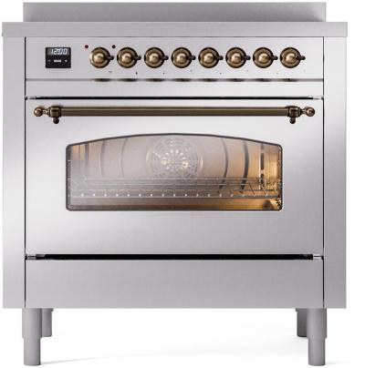 30" ILVE Nostalgie II Induction Freestanding Range in Stainless Steel with Bronze Trim - UPI304NMP/S