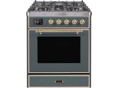 30" ILVE Majestic II Dual Fuel Natural Gas Freestanding Range in Blue Grey with Brass Trim - UM30DNE