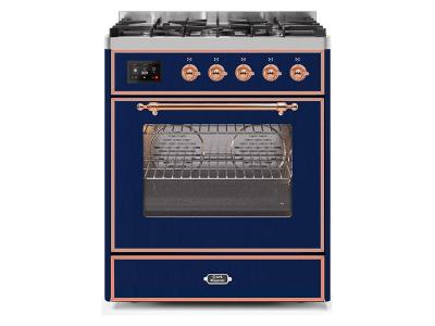 30" ILVE Majestic II Dual Fuel Range with Copper Trim in Blue - UM30DNE3MBP-NG