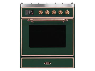 30" ILVE Majestic II Dual Fuel Range with Copper Trim in Emerald Green - UM30DNE3EGP-NG