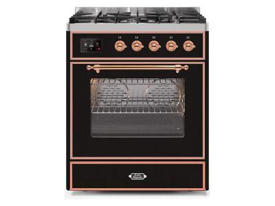 30" ILVE Majestic II Dual Fuel Range with Copper Trim in Glossy Black - UM30DNE3BKP-LP