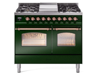 40" ILVE Nostalgie II Dual Fuel Natural Gas Freestanding Range in Blue with Copper Trim - UPD40FNMP/