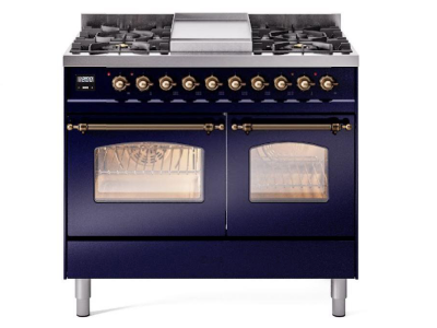 40" ILVE Nostalgie II Dual Fuel Natural Gas Freestanding Range in Blue with Bronze Trim - UPD40FNMP/