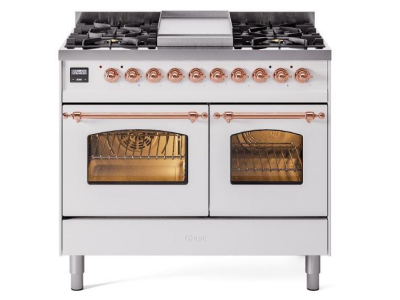 40" ILVE Nostalgie II Dual Fuel Natural Gas Freestanding Range in White with Copper Trim - UPD40FNMP
