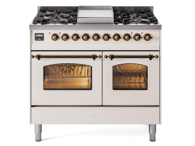 40" ILVE Nostalgie II Dual Fuel Natural Gas Freestanding Range in Antique White with Bronze Trim - U