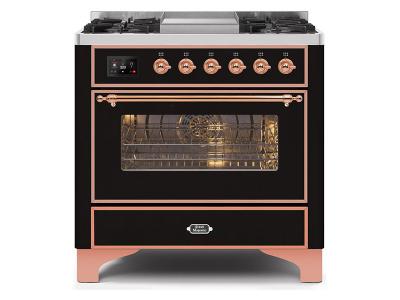 36" ILVE Majestic II Dual Fuel Range with Copper Trim in Matte Graphite - UM09FDNS3MGP-NG