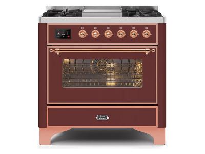 36" ILVE Majestic II Dual Fuel Range with Copper Trim in Burgundy - UM09FDNS3BUP-LP