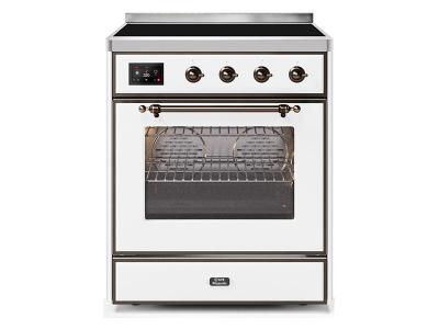 30" ILVE Majestic II Electric Freestanding Range With Bronze Trim In White - UMI30NE3WHB