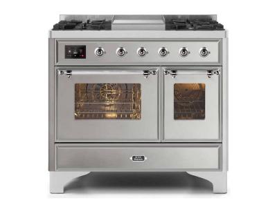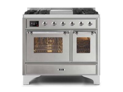 40" ILVE Majestic II Dual Fuel Natural Gas Freestanding Range with Chrome Trim in Stainless Steel -