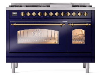 48" ILVE Nostalgie II Dual Fuel Natural Gas Freestanding Range in Blue with Brass Trim - UP48FNMP/MB