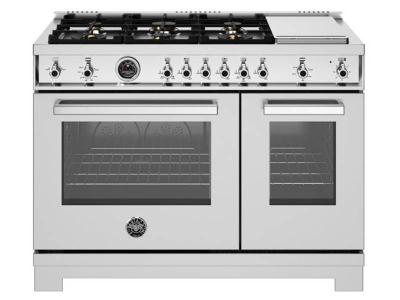 48" Bertazzoni All Gas Range with 6 Brass Burners and Griddle in Stainless Steel - PRO486BTFGMXT