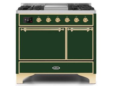 40" ILVE 3.82 Cu. Ft. Majestic II Dual Fuel Liquid Propane Range in Emerald Green with Bronze Trim -