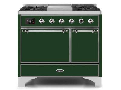 40" ILVE Majestic II Dual Fuel Freestanding Range with Chrome Trim in Emerald Green - UMD10FDQNS3/EG