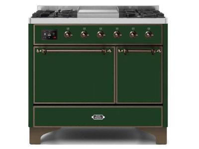 40" ILVE Majestic II Dual Fuel Liquid Propane Range with Copper Trim in Emerald Green - UMD10FDQNS3/