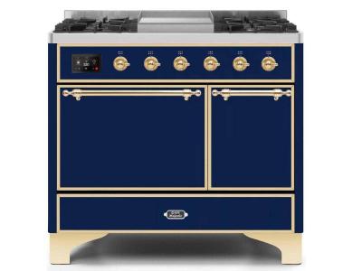 40" ILVE Majestic II Dual Fuel Liquid Propane Range with Brass Trim in Blue - UMD10FDQNS3/MBG LP
