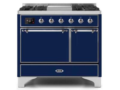 40" ILVE Majestic II Dual Fuel Freestanding Range with Chrome Trim in Blue - UMD10FDQNS3/MBC LP