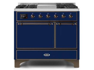 40" ILVE 3.82 Cu. Ft. Majestic II Dual Fuel Liquid Propane Range in Blue with Bronze Trim - UMD10FDQ