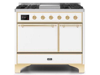 40" ILVE Majestic II Dual Fuel Liquid Propane Range with Brass Trim in White - UMD10FDQNS3/WHG LP