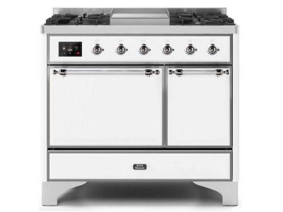 40" ILVE Majestic II Dual Fuel Freestanding Range with Chrome Trim in White - UMD10FDQNS3/WHC LP
