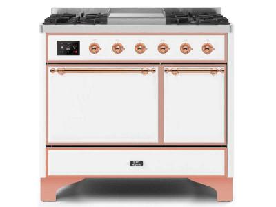 40" ILVE Majestic II Dual Fuel Liquid Propane Range with Copper Trim in White - UMD10FDQNS3/WHP LP