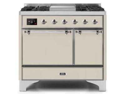 40" ILVE Majestic II Dual Fuel Freestanding Range with Chrome Trim in Antique White - UMD10FDQNS3/AW