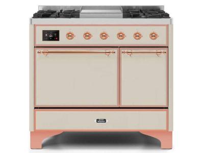 40" ILVE Majestic II Dual Fuel Liquid Propane Range with Copper Trim in Antique White - UMD10FDQNS3/
