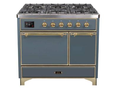 40" ILVE Majestic II Dual Fuel Liquid Propane Range with Brass Trim in Blue Grey - UMD10FDQNS3/BGG L