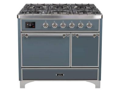 40" ILVE Majestic II Dual Fuel Freestanding Range with Chrome Trim in Blue Grey - UMD10FDQNS3/BGC LP