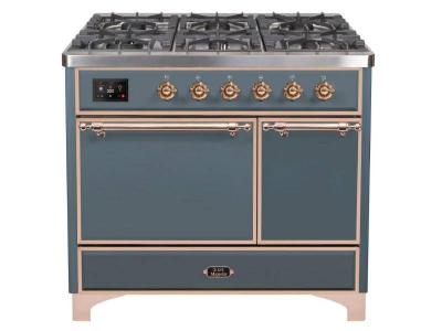 40" ILVE Majestic II Dual Fuel Liquid Propane Range with Copper Trim in Blue Grey - UMD10FDQNS3/BGP