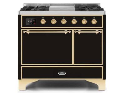 40" ILVE Majestic II Dual Fuel Natural Gas Range with Brass Trim in Glossy Black - UMD10FDQNS3/BKG N