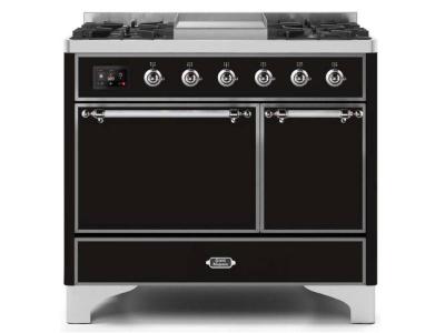 40" ILVE Majestic II Dual Fuel Natural Gas Freestanding Range with Chrome Trim in Glossy Black - UMD