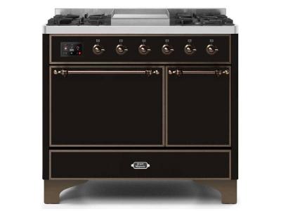 40" ILVE Majestic II Dual Fuel Natural Gas Freestanding Range with Bronze Trim in Glossy Black - UM