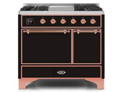 40" ILVE Majestic II Dual Fuel Natural Gas Freestanding Range with Copper in Glossy Black - UMD10FDQ
