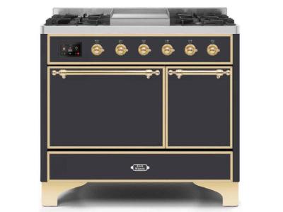 40" ILVE Majestic II Dual Fuel Natural Gas Range with Brass Trim in Matte Graphite - UMD10FDQNS3/MGG