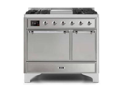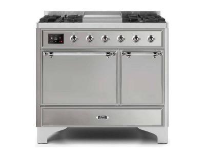 40" ILVE Majestic II Dual Fuel Natural Gas Freestanding Range with Chrome Trim in Stainless Steel -